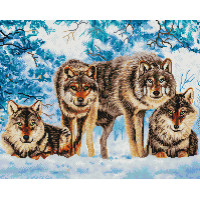 Творческий набор в формате 30*40 см. изготовлен по авторскому сюжету Юлии Неприятель. Перед вами композиция с двумя снежными барсами, окутанными падающим снегом.