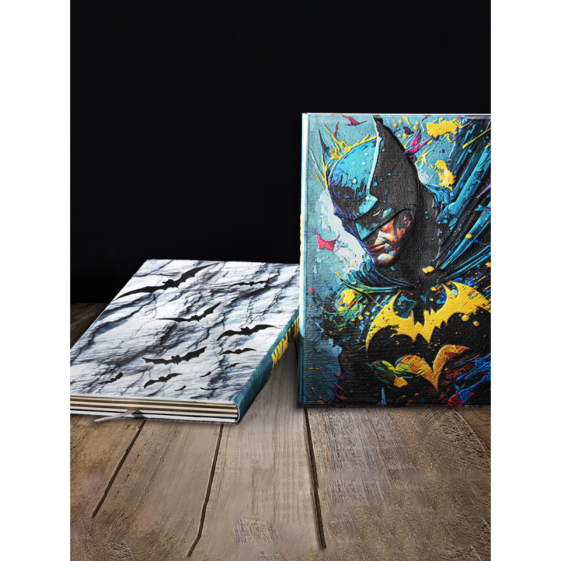Записная книжка с твердой обложкой с изображением Бэтмена - отличный вариант для любителей стиля и комфорта. Коллекция включает в себя элегантные модели с харизматичным дизайном и функциональной структурой, а также послужат как сувенир или подарок для вашей семьи и друзей. Они стильные, уникальные и поражают своим трехмерным дизайном. Блокнот перенесет вас в мир фантазии, стимулируя вашу креативность и воображение.