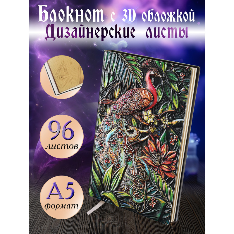 Записная книжка с твердой обложкой с изображением павлина - отличный вариант для любителей стиля и комфорта. Коллекция включает в себя элегантные модели с харизматичным дизайном и функциональной структурой, а также послужат как сувенир или подарок для вашей семьи и друзей. Они стильные, уникальные и поражают своим трехмерным дизайном. Блокнот перенесет вас в мир фантазии, стимулируя вашу креативность и воображение.