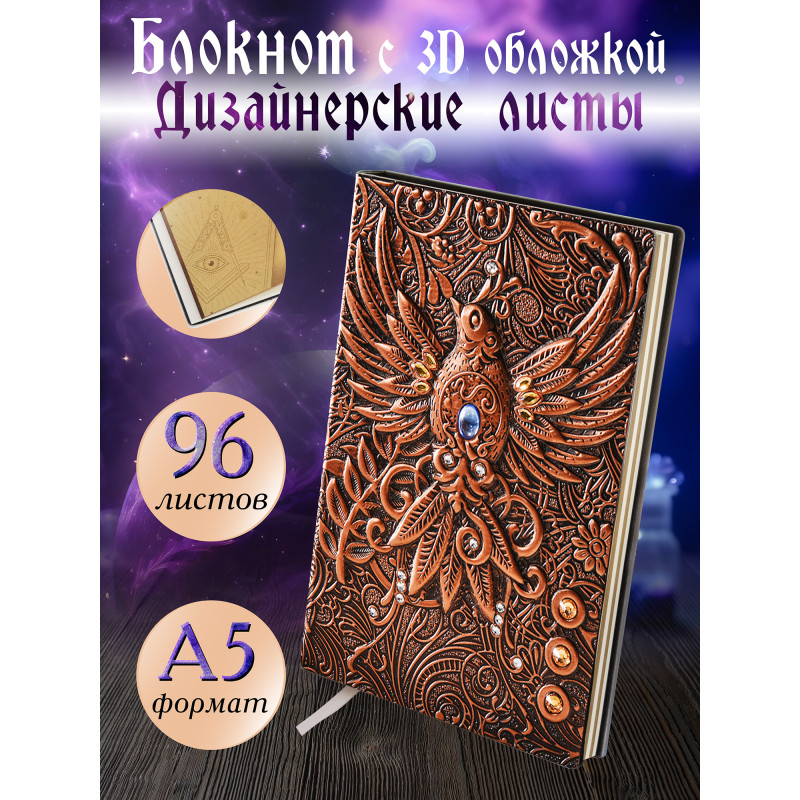 Записная книжка с твердой обложкой с изображением феникса - отличный вариант для любителей стиля и комфорта. Коллекция включает в себя элегантные модели с харизматичным дизайном и функциональной структурой, а также послужат как сувенир или подарок для вашей семьи и друзей. Они стильные, уникальные и поражают своим трехмерным дизайном. Блокнот перенесет вас в мир фантазии, стимулируя вашу креативность и воображение.