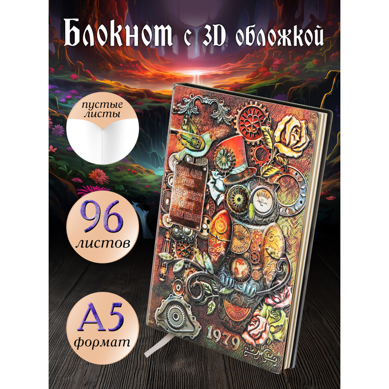 Записная книжка с твердой обложкой с изображением стимпанк