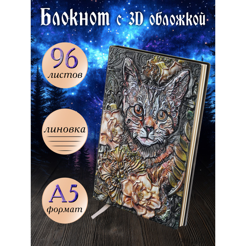 Блокнот с 3D-обложной: 280-NP Цветочный кот
