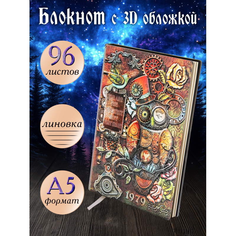дизайном. Дневник с 3D обложкой, украшенный принтом и магическими элементами, –
