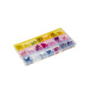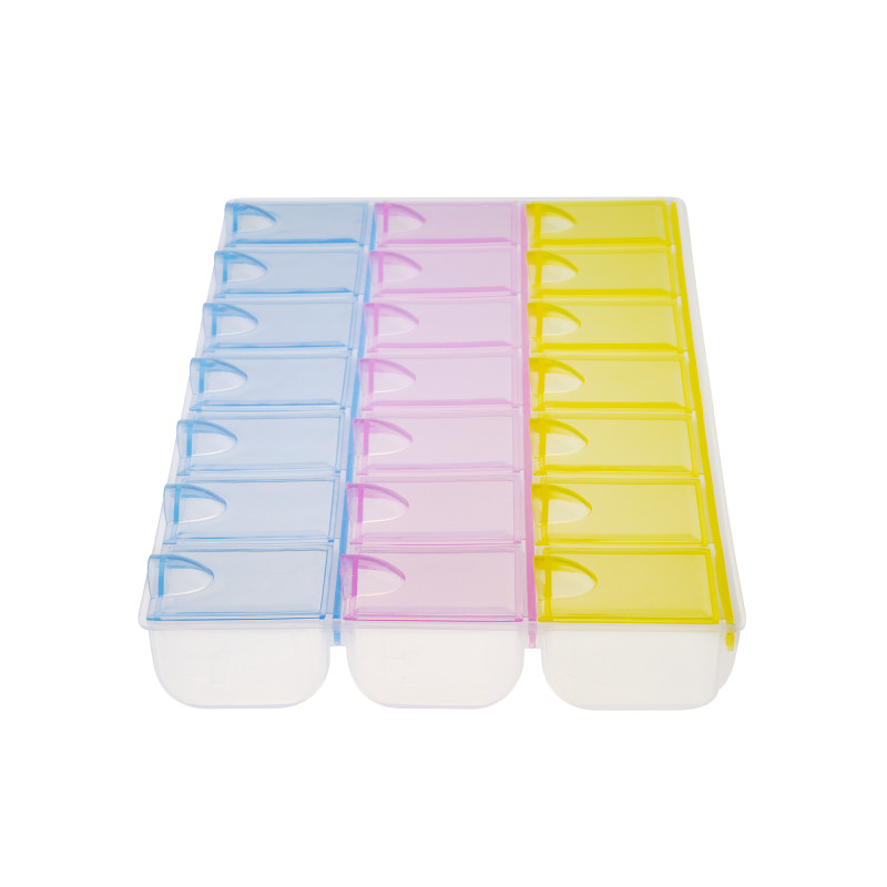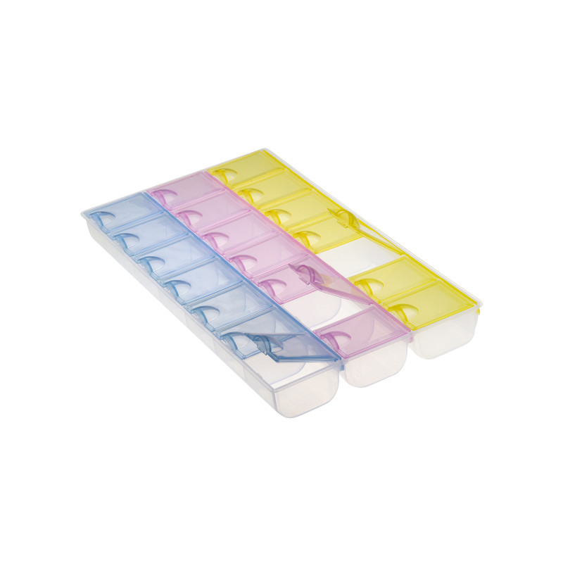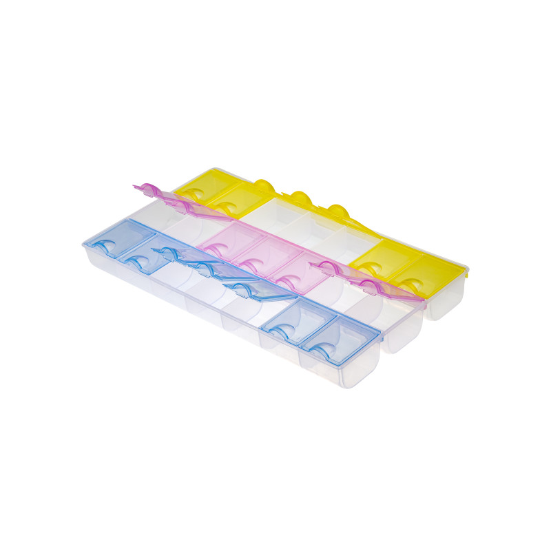 Крышки каждого ряда имеет свой цвет. Органайзер можно безопасно
