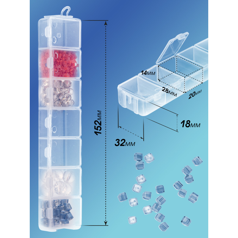 Размер органайзера: 15,2 * 3,2 * 1,8 см. Размер ячеек: 2,8 * 2 * 1,4 см. Количество