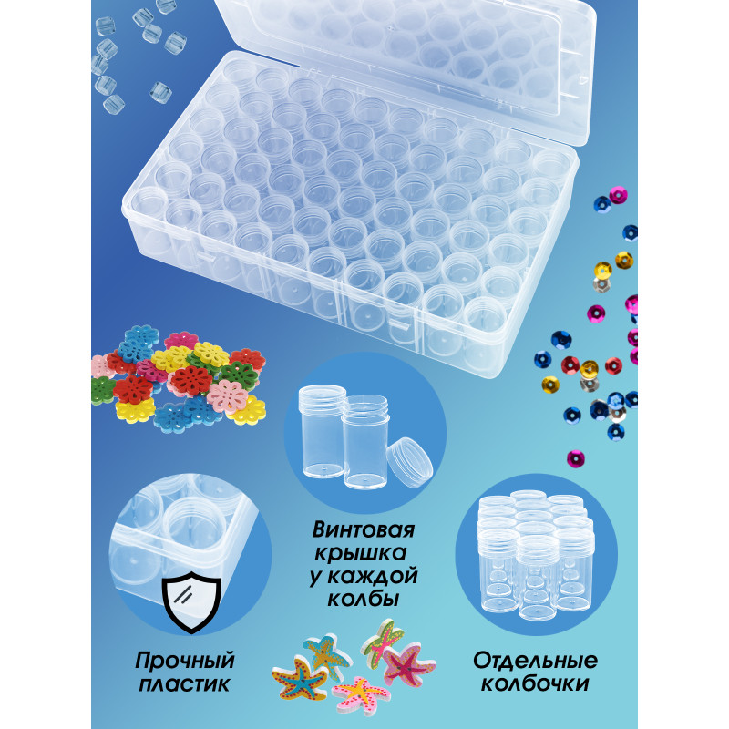 Аксессуар для рукоделия: Органайзер с колбами 60 шт.