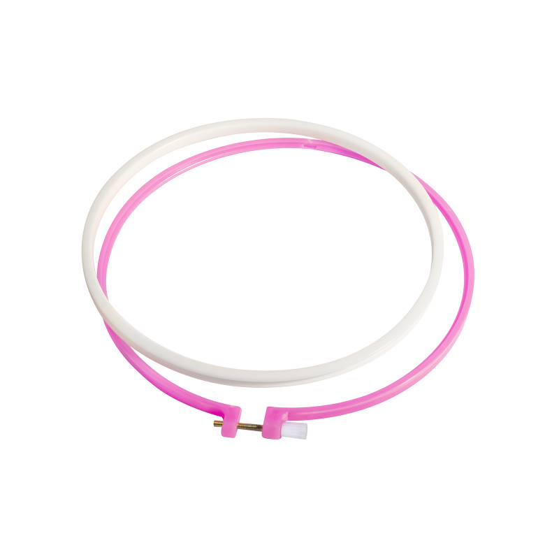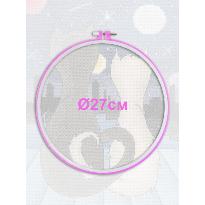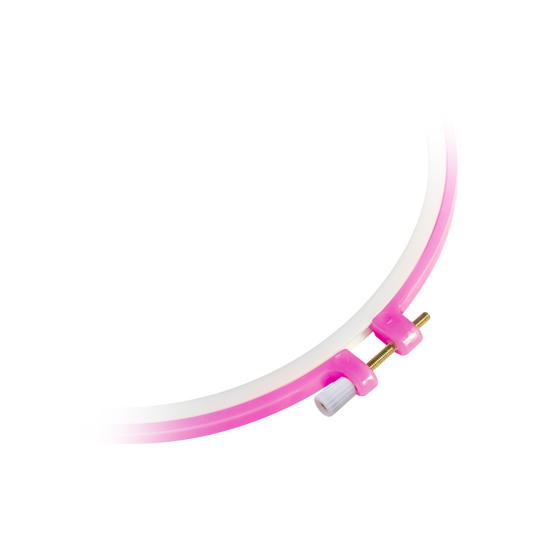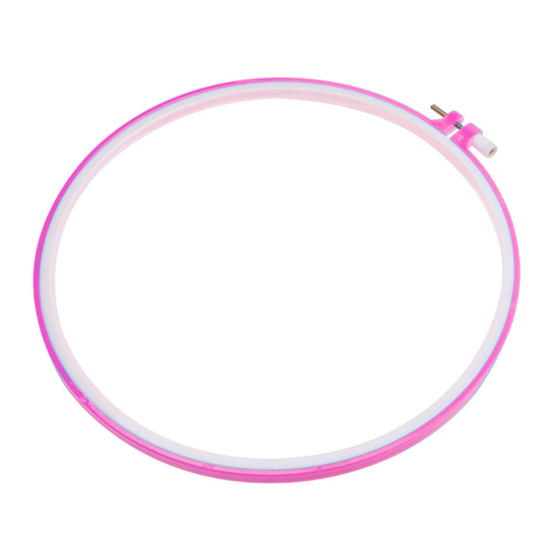 Пяльцы предназначены для натяжения ткани при вышивке крестом, гладью или бисером. Круглые пяльцы изготовлены из пластика высокой прочности, они легкие и их удобно держать в руках. Регулировочный винт металлический с пластиковой гайкой обеспечивает надежную фиксацию канвы. С его помощью можно регулировать степень натяжения полотна. Благодаря этому ваша ткань не будет смещаться во время работы, вышивать будет комфортно, при хорошей натяжке стежки получаются ровными. Фактический размер больших пялец: внешний диаметр 27 см, внутренний диаметр 24,5 см.