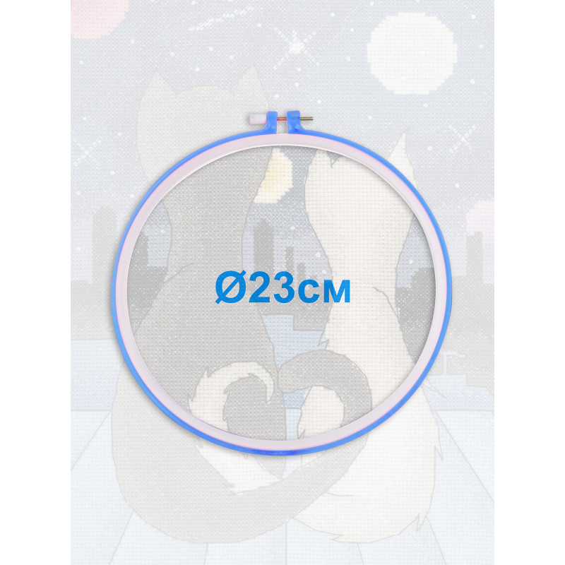 Пяльцы среднего размера, внешний диаметр 24 см., внутренний диаметр 21,8 см., предназначены для натяжения ткани при вышивке крестом, гладью или бисером. Круглые пяльцы изготовлены из пластика высокой прочности, они легкие и их удобно держать в руках. Регулировочный винт металлический с пластиковой гайкой обеспечивает надежную фиксацию канвы. С его помощью можно регулировать степень натяжения полотна. Благодаря этому ваша ткань не будет смещаться во время работы, вышивать будет комфортно, при хорошей натяжке стежки получаются ровными.