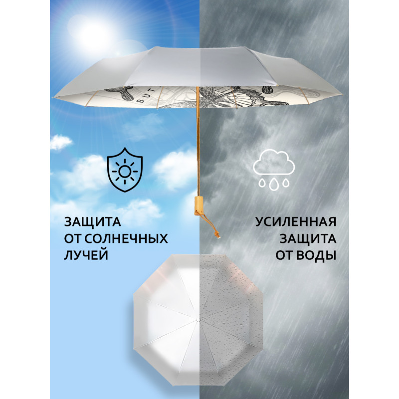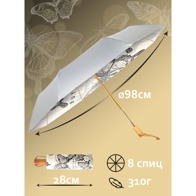 Одно из главных преимуществ этого зонта – его двусторонний дизайн с принтом порхающих бабочек. Черные и белые оттенки