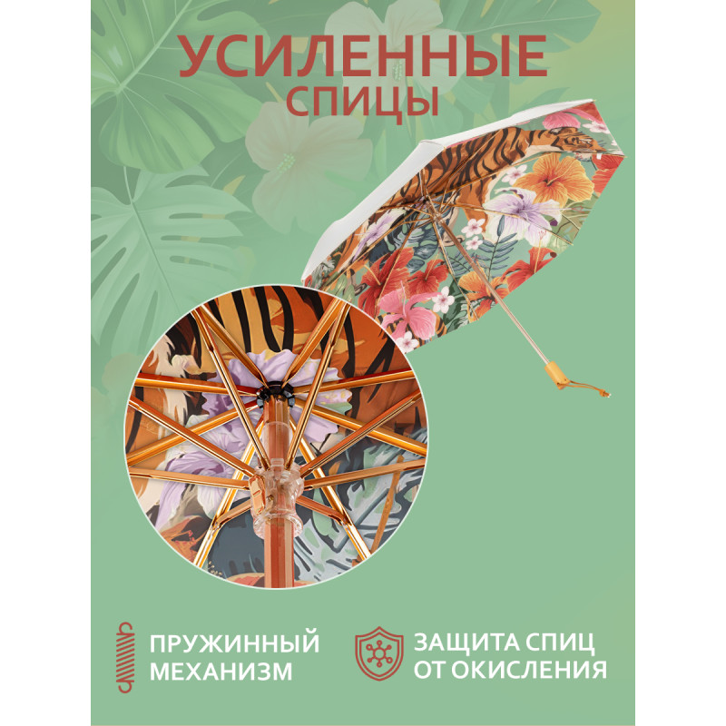 Одно из главных преимуществ этого зонта – его двусторонний дизайн с принтом тигра. Пастельные оттенки придают ему стильный и элегантный вид, а анималистический рисунок добавляет изюминку. Вы сможете подчеркнуть свою индивидуальность и стать настоящим центром внимания с таким зонтом.