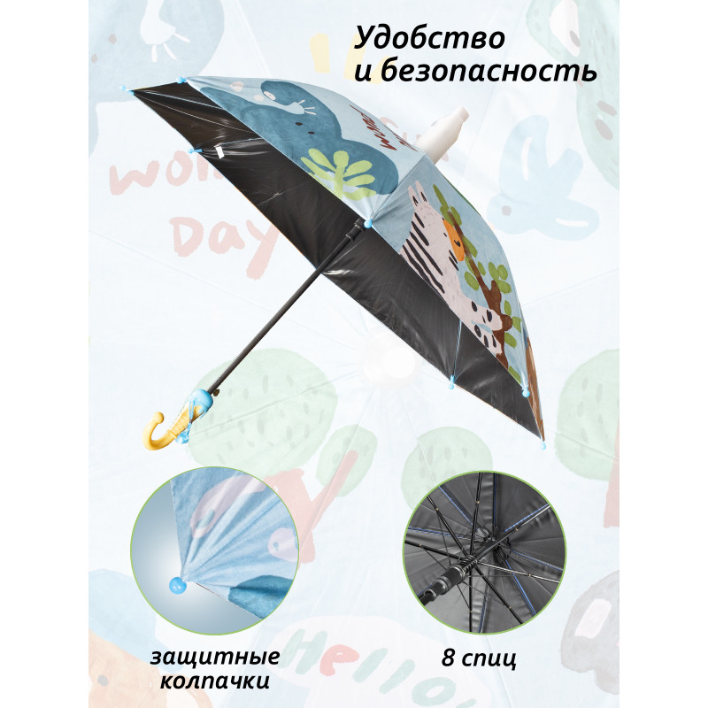 Зонт оснащен прочными спицами. Это делает его использование максимально безопасным, так как закругленные края предотвращают возможность травмирования. Ни одна спица не выглядывает из-под полотна, каждая из них спрятана в защитный колпачок – это особенно важно для безопасности вашего ребенка.