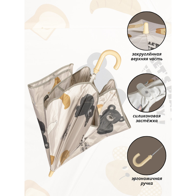 Зонт оснащен прочными спицами. Это делает его использование максимально безопасным, так как закругленные края предотвращают возможность травмирования. Ни одна спица не выглядывает из-под полотна, каждая из них спрятана в защитный карман – это особенно важно для безопасности вашего ребенка.