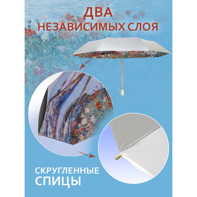 ультрафиолетовых лучей, а также делает зонт от солнца легким и прочным.