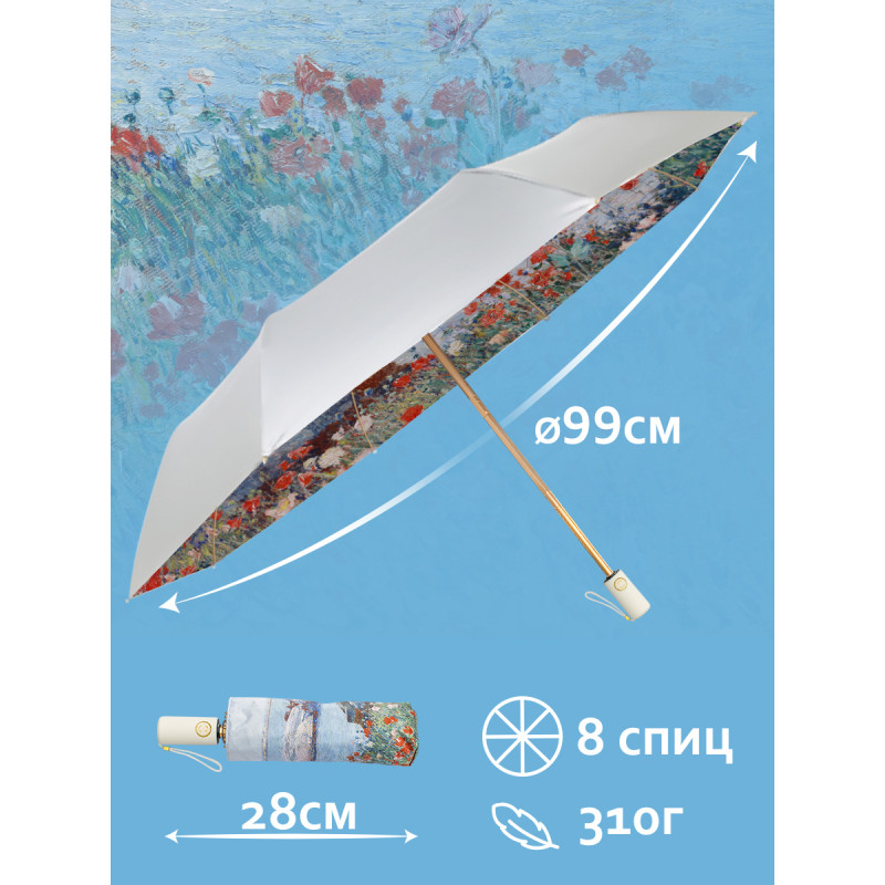 Зонт имеет компактные размеры, в сложенном виде 28 см, легко