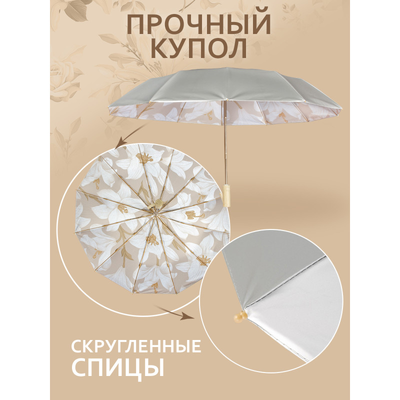 1». Эффектный плотный золотой купол снаружи и яркий цветочный принт внутри с нежными белыми лилиями. Вы сможете
