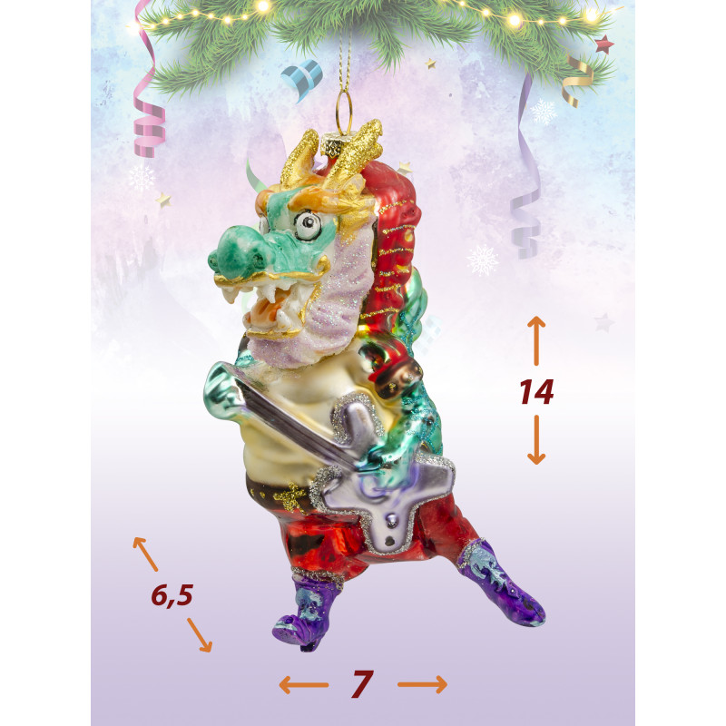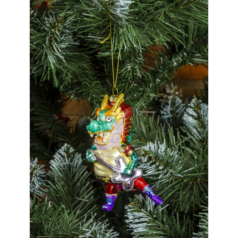 В наборе собраны елочные игрушки в форме кота, собаки и дракона, играющих в рок-группе. Они