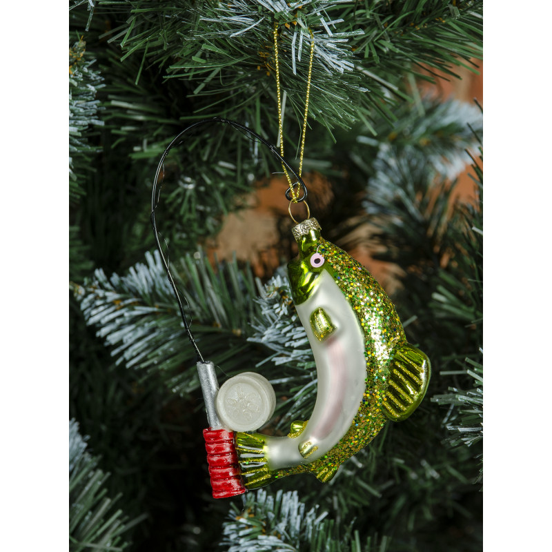 прямо на новогодней елке. Клешни краба и удочка в игрушке Рыбалка сделаны из полистоуна.
