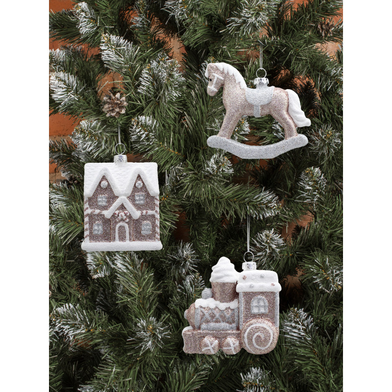 тщательной проработкой каждого элемента. В набор входят: Домик – 9.3*8.2 см, Паровоз - 9.3*9.2 см, Лошадка-качалка - 11.2*9 см. Все это прекрасно подходит для создания