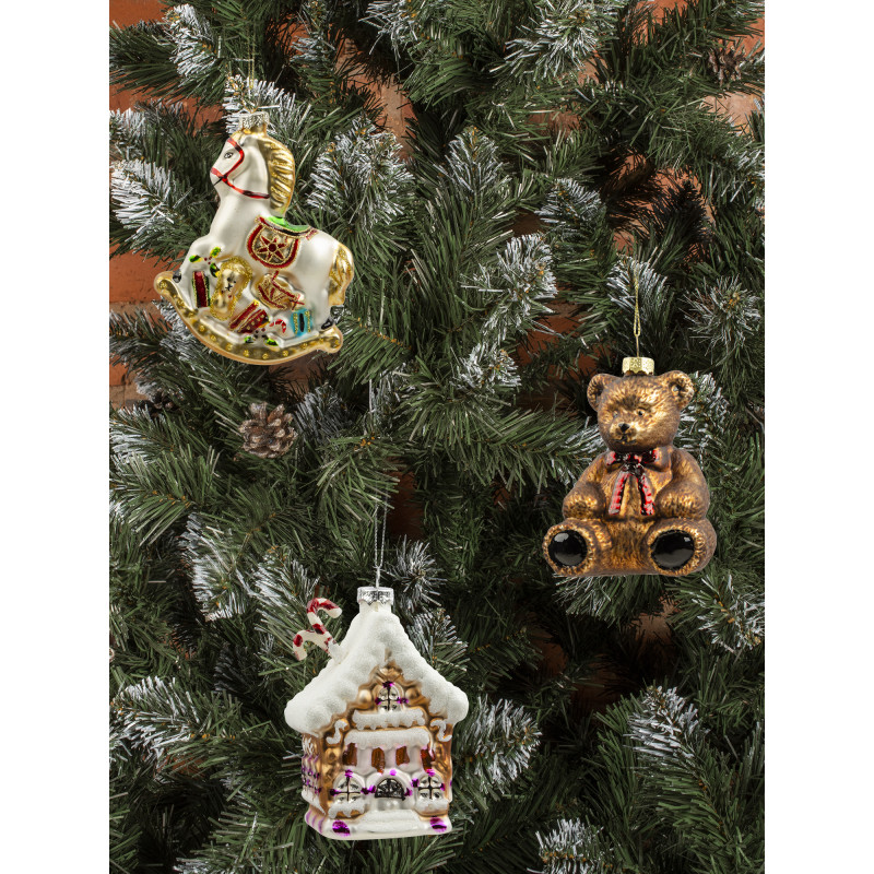 Белая лошадка-качалка с золотистой гривой и подарками станет отличным акцентом на вашей ёлке. Украшение создаст особое настроение. Размер игрушки 11*9 см.