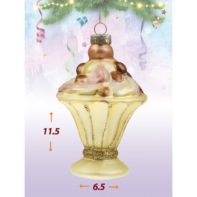 Воздушный нежный десерт в креманке станет отличным акцентом на вашей ёлке. Украшение создаст особое настроение. Размер игрушки 11.5*6.5 см.
