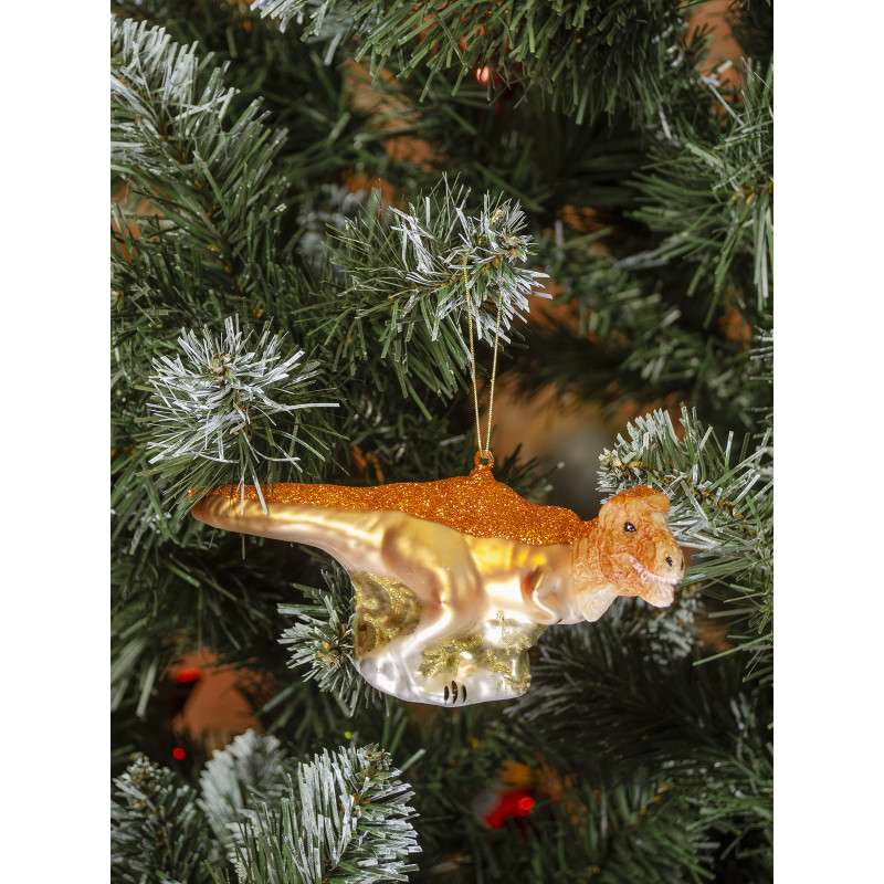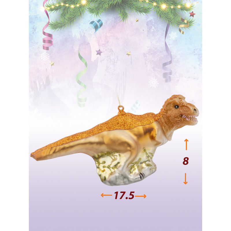 Тиранозавр на камне с чешуей в виде блесток станет отличным акцентом на вашей ёлке. Украшение создаст особое настроение. Размер игрушки 17.5*8 см.