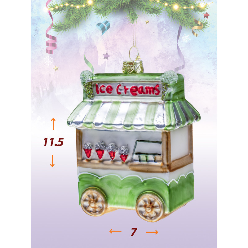 Милый фургончик с мороженым станет отличным акцентом на вашей ёлке. Украшение создаст особое настроение. Размер игрушки 11.5*7 см.