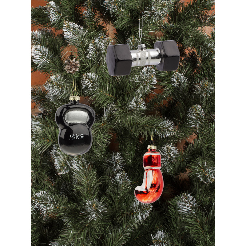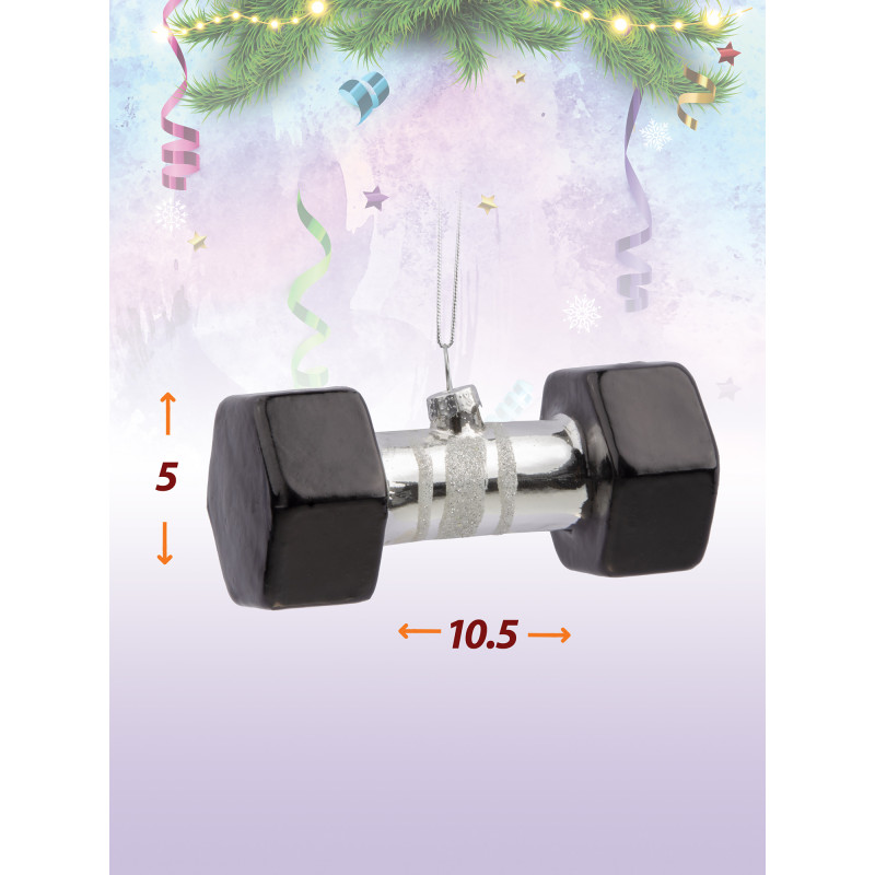 Гантель с черными блинами по бокам станет отличным акцентом на вашей ёлке. Украшение создаст особое настроение. Размер игрушки 10.5*5 см.