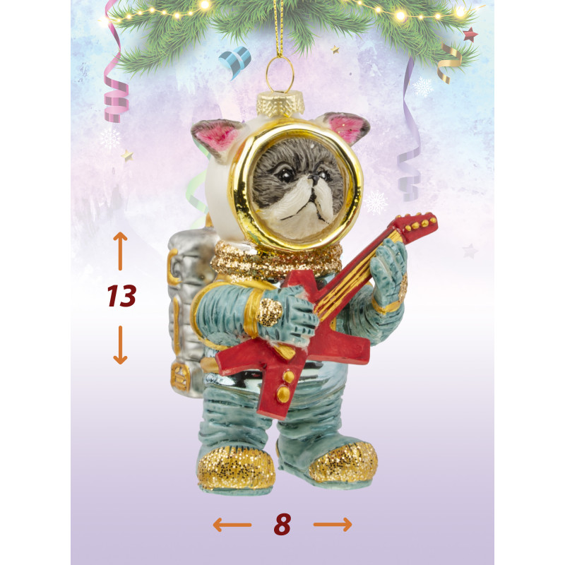 Серый кот-рокер и по совместительству космонавт станет отличным акцентом на вашей ёлке. Украшение создаст особое настроение. Размер игрушки 13*8 см.