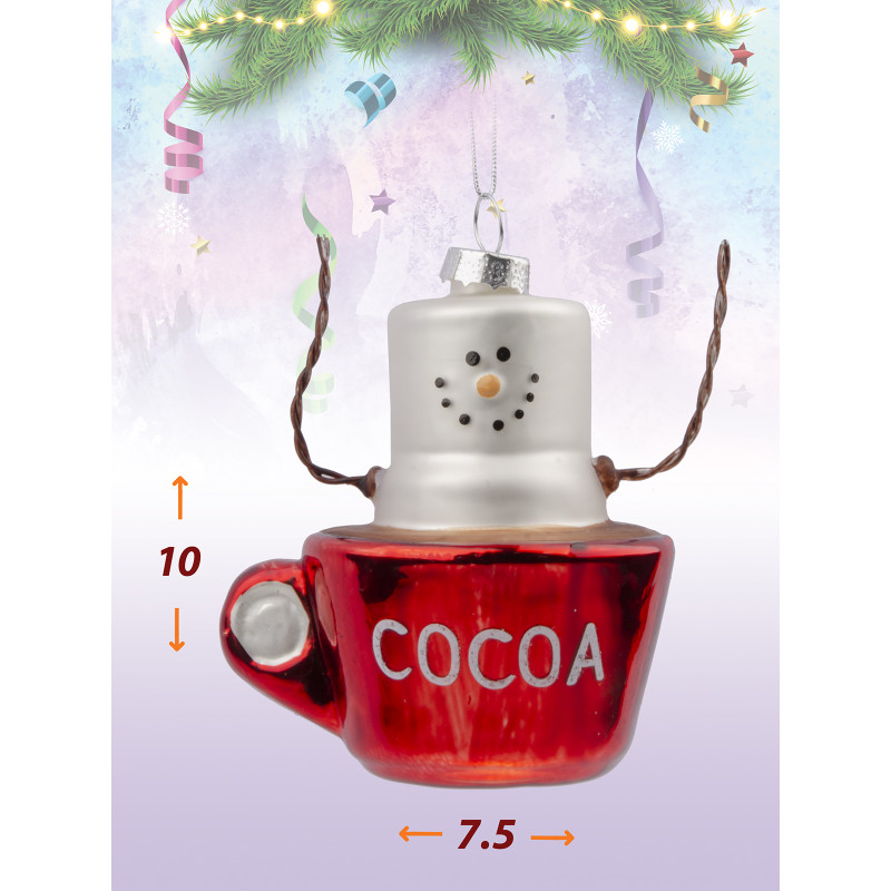 Снеговичок, купающийся в большой красной чашке с какао, станет отличным акцентом на вашей ёлке. Украшение создаст особое настроение. Размер игрушки 10*7.5 см.