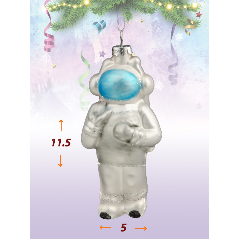 Космонавт в белом скафандре с декором из серебристых блесток станет отличным акцентом на вашей ёлке. Украшение создаст особое настроение. Размер игрушки 11.5*5 см.