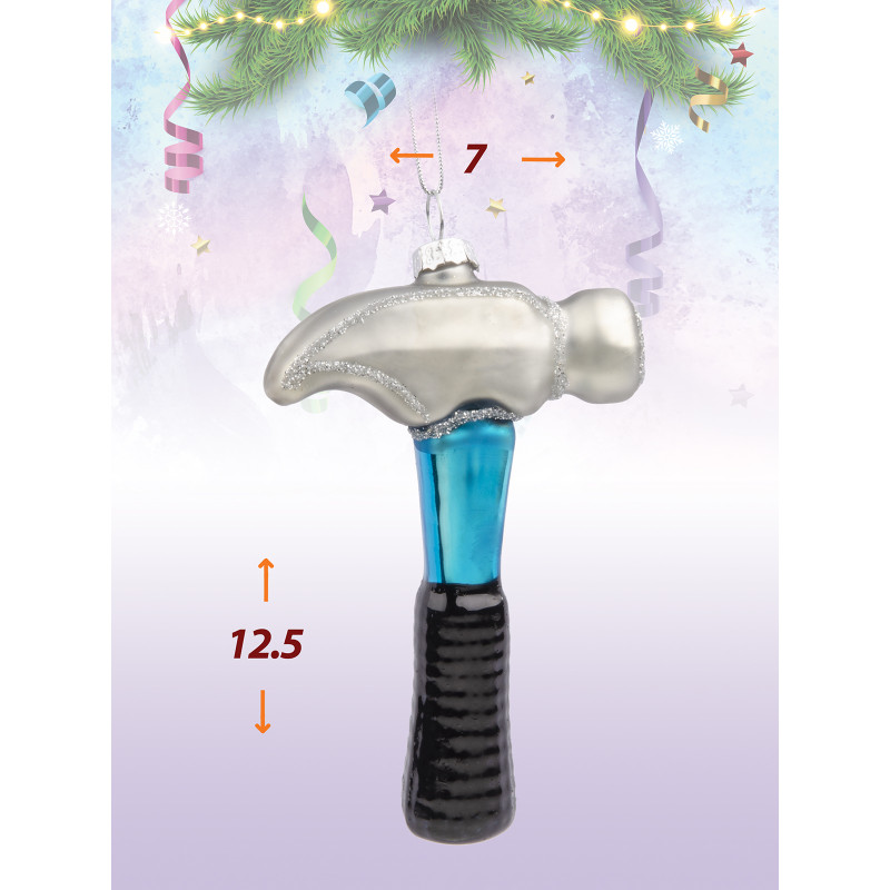 Молоток с синей ручкой и серебристой верхушкой станет отличным акцентом на вашей ёлке. Украшение создаст особое настроение. Размер игрушки 12.5*7 см.