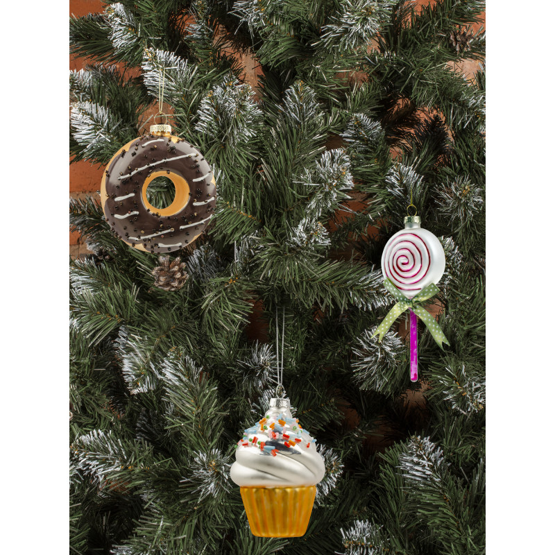 Пончик в шоколадной глазури с полосами из белого крема и бусинами в виде сладкой посыпки станет отличным акцентом на вашей ёлке. Украшение создаст особое настроение. Размер игрушки 11*9.5 см.