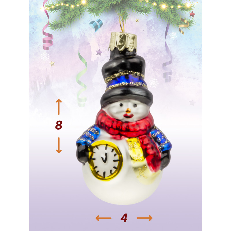 Милый снеговичок в шапке, шарфике и часами станет отличным акцентом на вашей ёлке. Украшение создаст особое настроение. Размер игрушки 8*4 см.