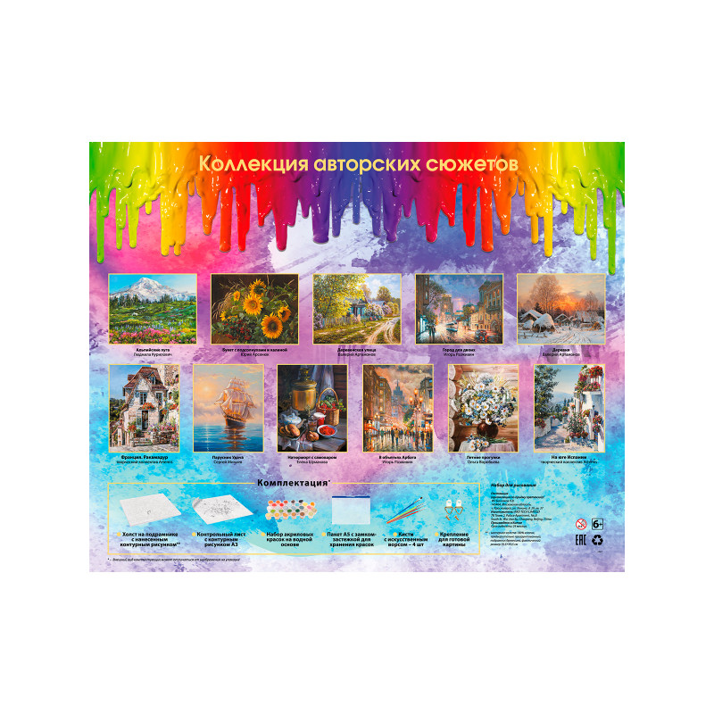 В набор входят качественные акриловые краски на водной