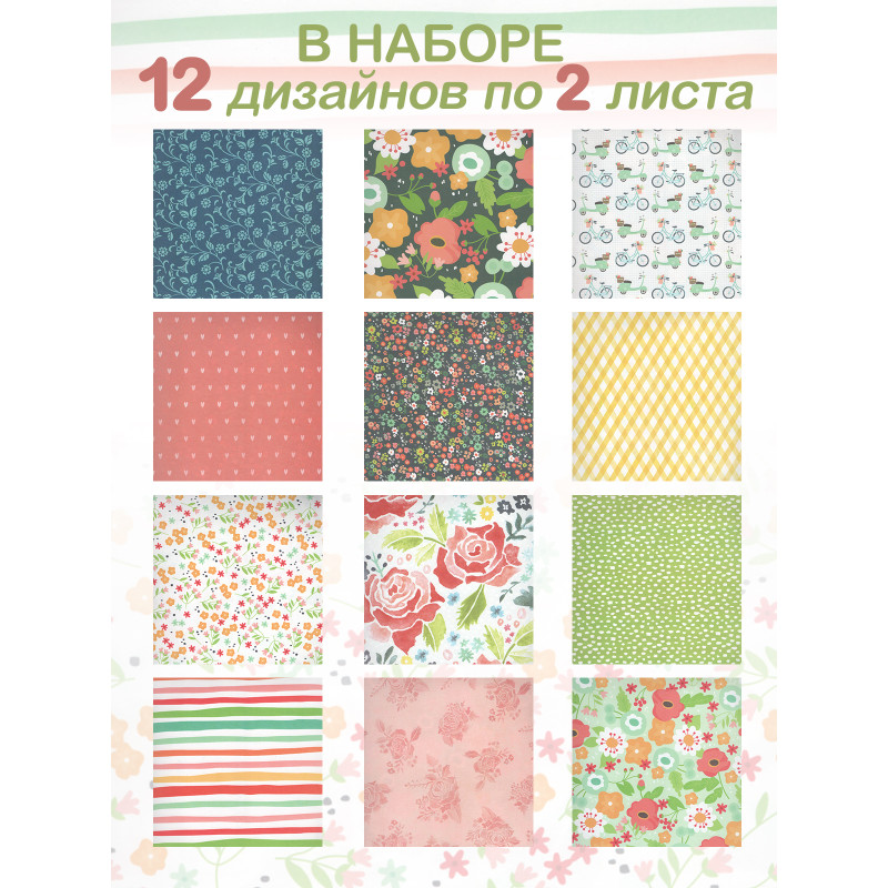 1. Скрап бумага 24 листа (12 видов дизайна по 2 листа)