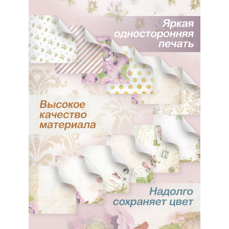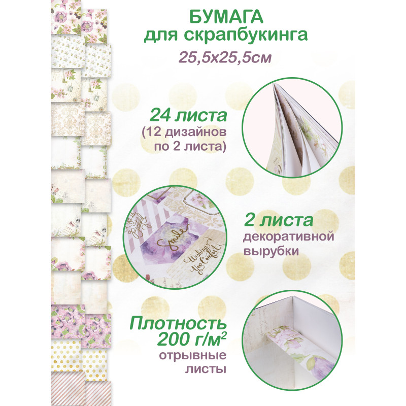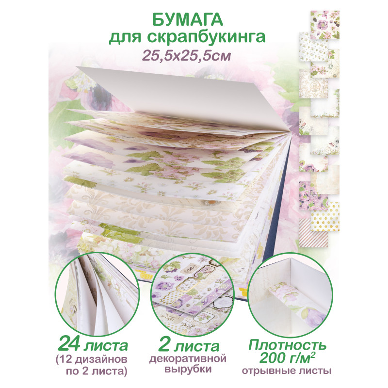 вниманию набор скрап-бумаги размером 25,5*25,5 см. Опытный взгляд скрапбукера мгновенно отметит