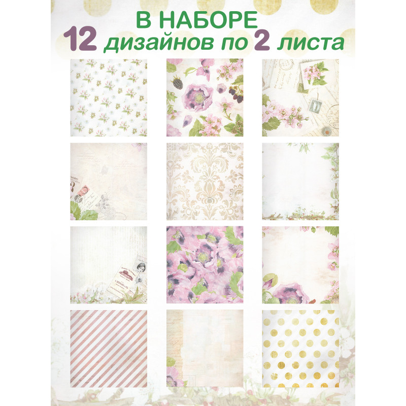 1. Скрап бумага 24 листа (12 видов дизайна по 2 листа)