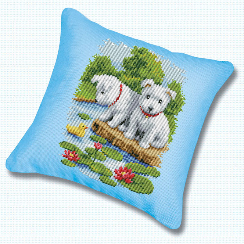 Набор для вышивания крестиком: чехол для подушки Два щенка