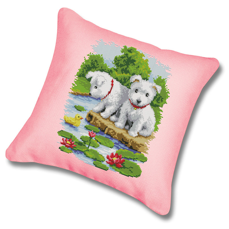 Набор для вышивания крестиком: чехол для подушки Два щенка